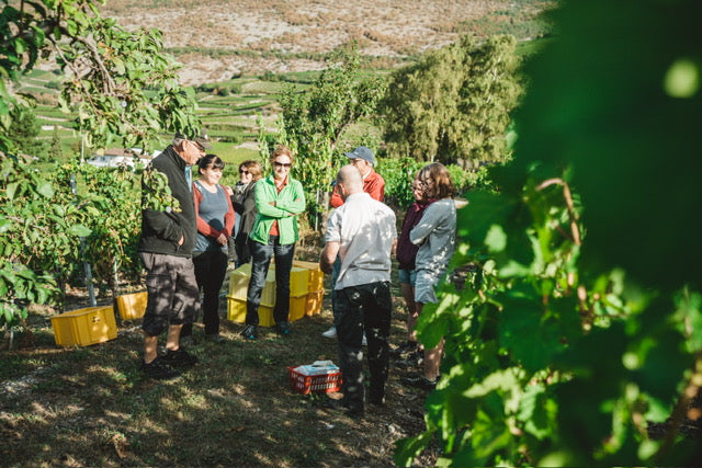 Iniziamo il lavoro in vigna con uno spuntino mattutino rinforzante, il tradizionale “Znüni”, e proseguiamo con la vendemmia, secondo le condizioni meteo e il grado di maturazione dell’uva, presso il Domaine Colline de Munta, dove si trova la nostra cantina. Con una splendida vista sui vigneti, sul Parco Naturale Pfyn-Finges e sulle montagne vallesane, gusteremo una zuppa di vino gourmet e un piatto tipico vallesano a pranzo.